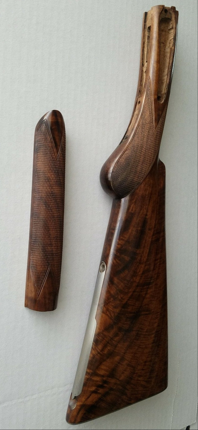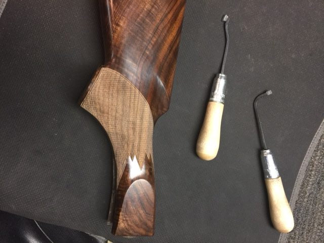 French Walnut (Juglans Regia) of the 40 or so species of Walnut, this strong close grain wood is the most prized wood to use in custom stocks because of the strength, beauty, and ability to shape.